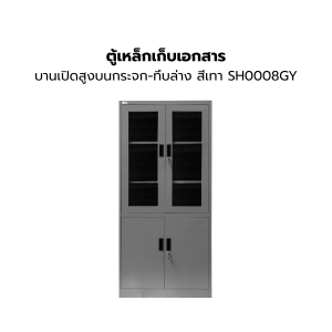 ตู้เหล็กเก็บเอกสาร ตู้เหล็กบานเปิดสูงบนกระจก-ทึบล่าง สีเทา SH0008GY