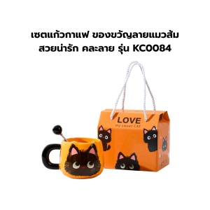 เซตแก้วกาแฟ ของขวัญลายแมวส้มสวยน่ารัก คละลาย รุ่น KC0084