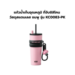 แก้วน้ำเก็บอุณหภูมิ ที่จับซิลิโคน วัสดุสแตนเลส ชมพู รุ่น KC0083-PK
