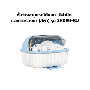 ชั้นวางจานทรงโค้งมน มีฝาปิด และถาดรองน้ำ (สีฟ้า) รุ่น SH0151-BU