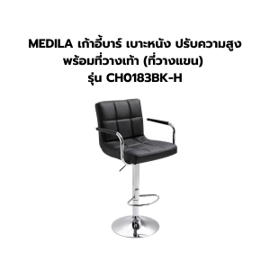 MEDILA เก้าอี้บาร์ เบาะหนัง ปรับความสูง พร้อมที่วางเท้า (ที่วางแขน) รุ่น CH0183BK-H