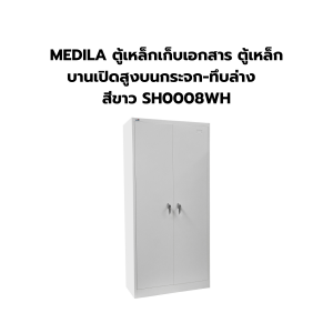 MEDILA ตู้เหล็กเก็บเอกสาร ตู้เหล็กบานเปิดสูงบนกระจก-ทึบล่าง สีขาว SH0008WH