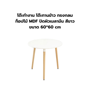 โต๊ะทำงาน โต๊ะทานข้าว ทรงกลม ท็อปไม้ MDF ปิดผิวเมลามีน สีขาว ขนาด 60*60 cm