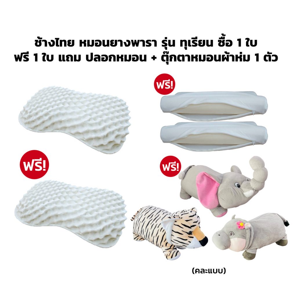 ช้างไทย หมอนยางพารา รุ่น ทุเรียน ซื้อ 1 ใบ ฟรี 1 ใบ แถม ปลอกหมอน + ตุ๊กตาหมอนผ้าห่ม 1 ตัว