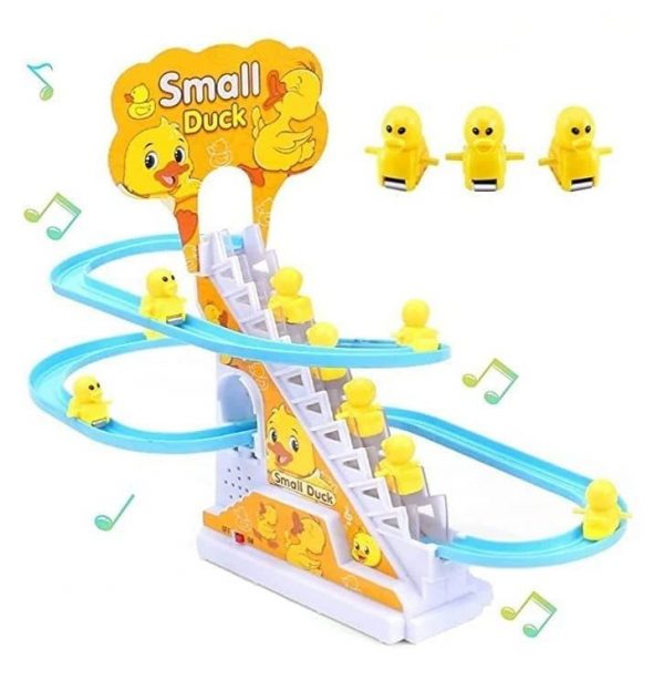 เป็ดน้อยสีเหลืองน่ารักสามารถปีนบันไดและรางเลื่อนได้ ของเล่นประกอบด้วยเพลงที่น่าสนใจและเพลงไพเราะ (พร้อมปุ่มเปิด/ปิด)