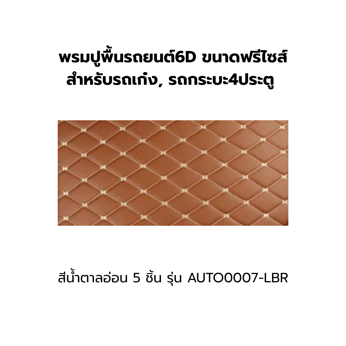 พรมปูพื้นรถยนต์6D ขนาดฟรีไซส์ สำหรับรถเก๋ง, รถกระบะ4ประตู สีน้ำตาลอ่อน 5ชิ้น รุ่น AUTO0007-LBR