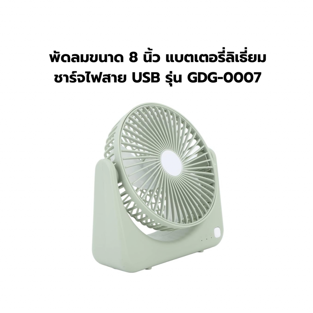 พัดลมขนาด 8นิ้ว แบตเตอรี่ลิเธี่ยม ชาร์จไฟสาย USB รุ่น GDG-0007