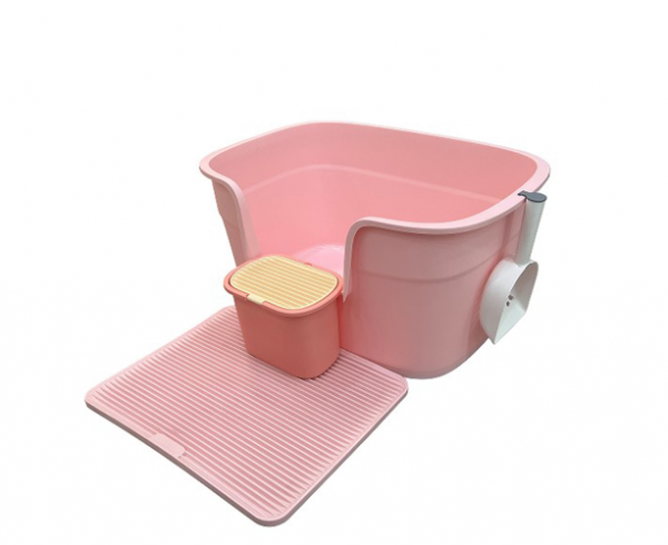 กระบะทรายห้องน้ำแมวขนาดใหญ่ กล่องทรายกึ่งเปิด พร้อมที่ตักทราย (สีชมพู) รุ่น PET0028-PK