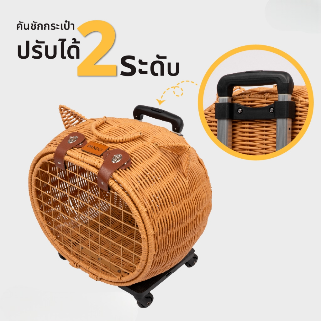 > วัสดุกระเป๋าเกรดพรีเมียม ผลิตจากหวายเทียม ทนต่อการกัด หรือขีดข่วน ของสัตว์เลี้ยง