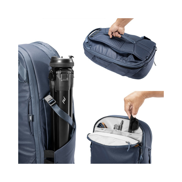 – ช่องด้านข้างสามารถพกพาขาตั้งกล้องหรือขวดน้ำได้