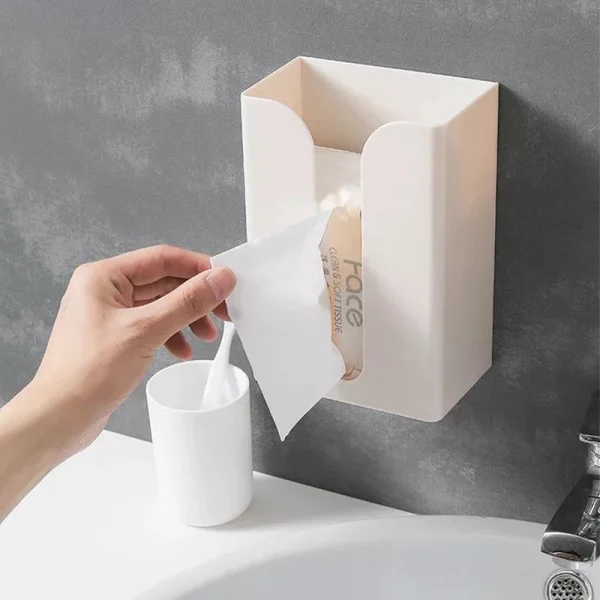 กล่องทิชชู่ติดผนัง แบบมีกาว ไม่ต้องเจาะ (สีขาว) รุ่น SH0172WH