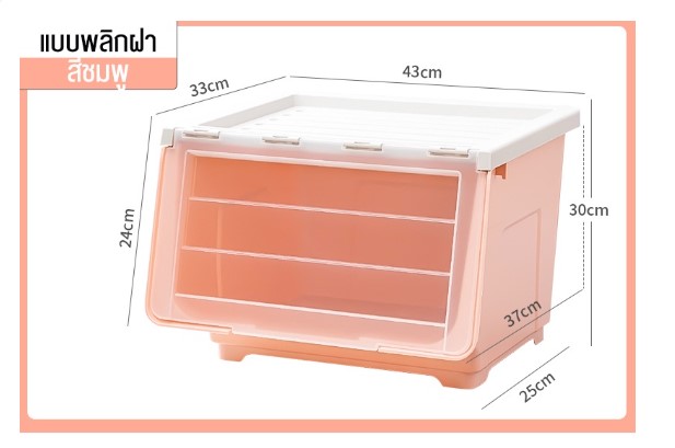 กล่องพลาสติก เก็บของ (มีฝาเปิดหน้า) 43*37*30 สีชมพู