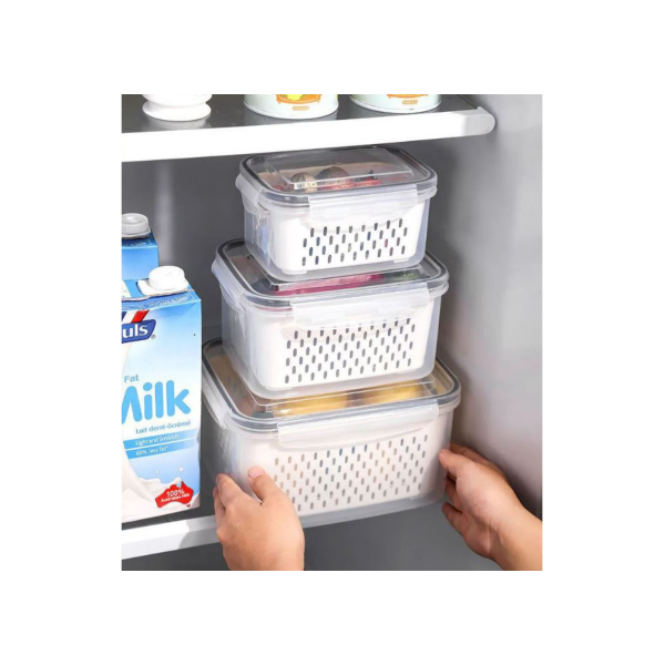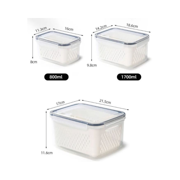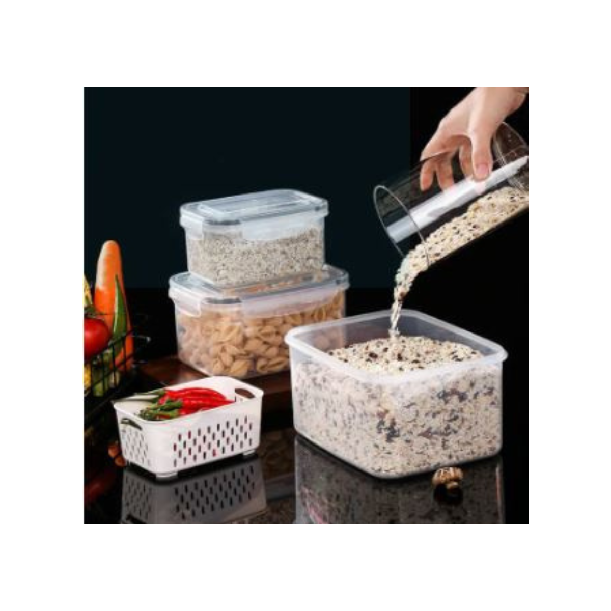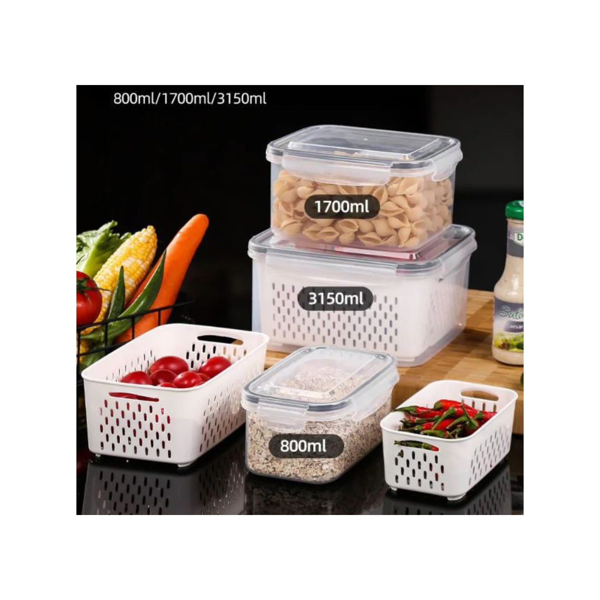 กล่องเก็บของในตู้เย็นแบบวางซ้อนกันได้พร้อมตะกร้า (1ชุดมี3ชิ้น 800ML,1700ML,3150ML