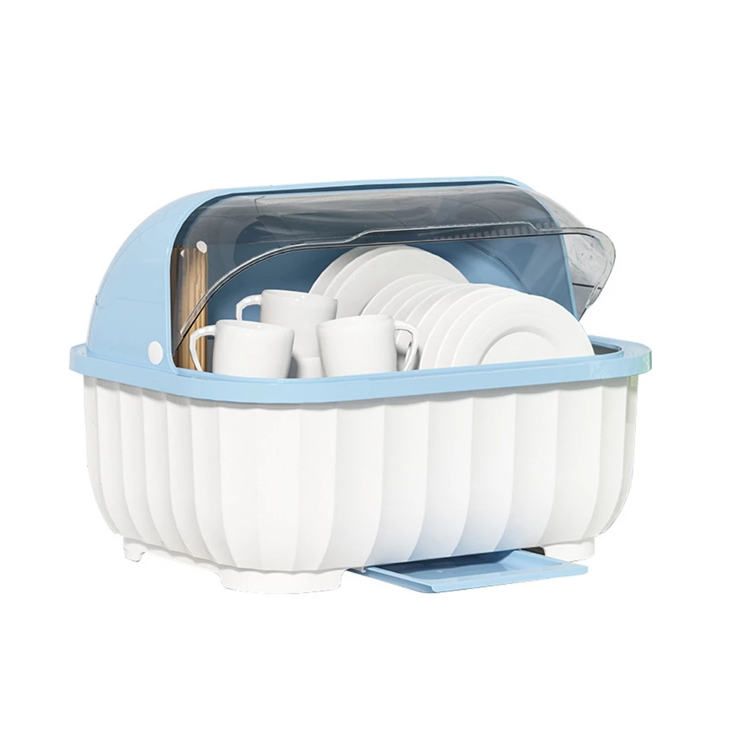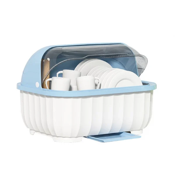 ชั้นวางจานทรงโค้งมน มีฝาปิด และถาดรองน้ำ (สีฟ้า) รุ่น SH0151-BU