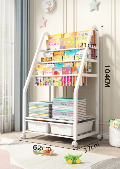 📑ช่วยกระตุ้นให้เด็กมีวินัย ฝึกการเก็บของเล่นให้เป็นระเบียบ 📑L(104*62*37cm): ชั้นวางหนังสือภาพ 3 ชั้น + ชั้นวางของ 2 ชั้น + กล่องเก็บของ 2 กล่อง