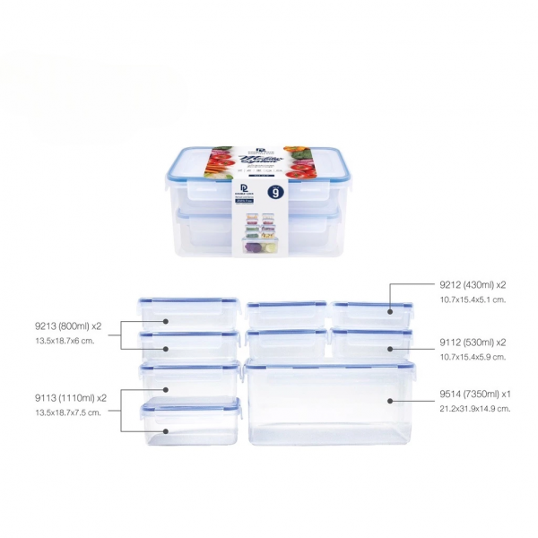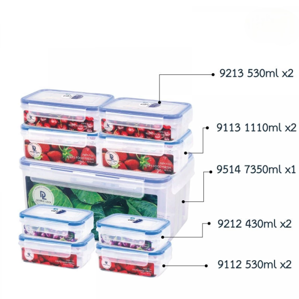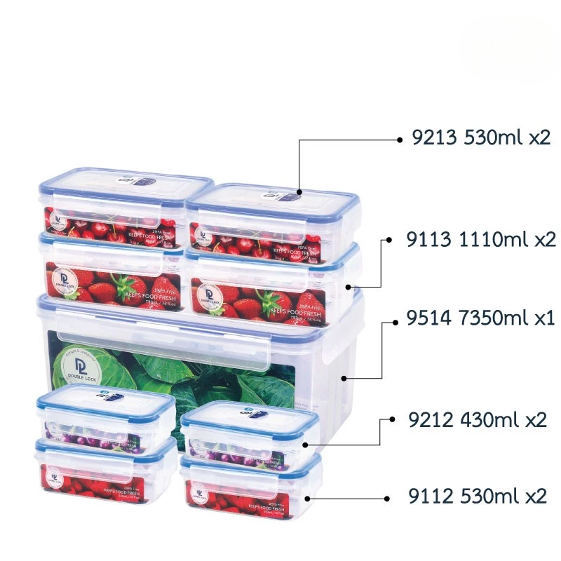 Double Lock ชุดกล่องพลาสติก ถนอมอาหาร 18 ชิ้นรวมฝา (9 กล่อง/ชุด Set)