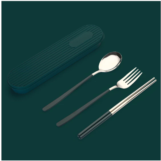ชุดช้อน ส้อม ตะเกียบ แคมป์ปิ้ง พร้อมกล่องเก็บ ( คละสี ) รุ่น KC0087