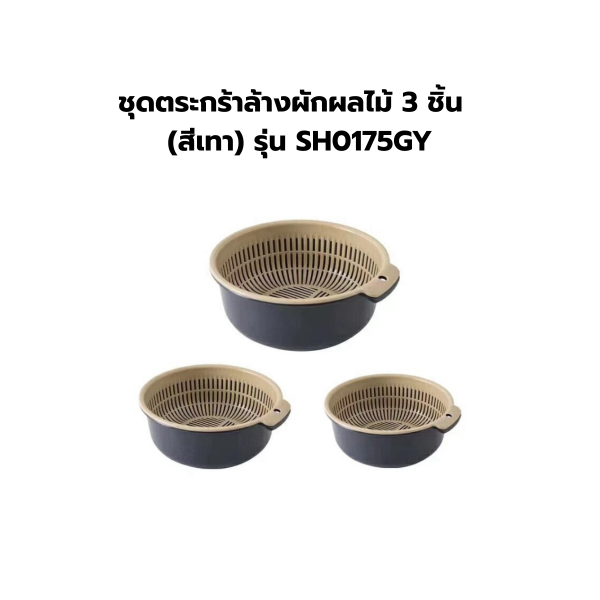 ชุดตระกร้าล้างผักผลไม้ 3 ชิ้น (สีเทา) รุ่น SH0175GY
