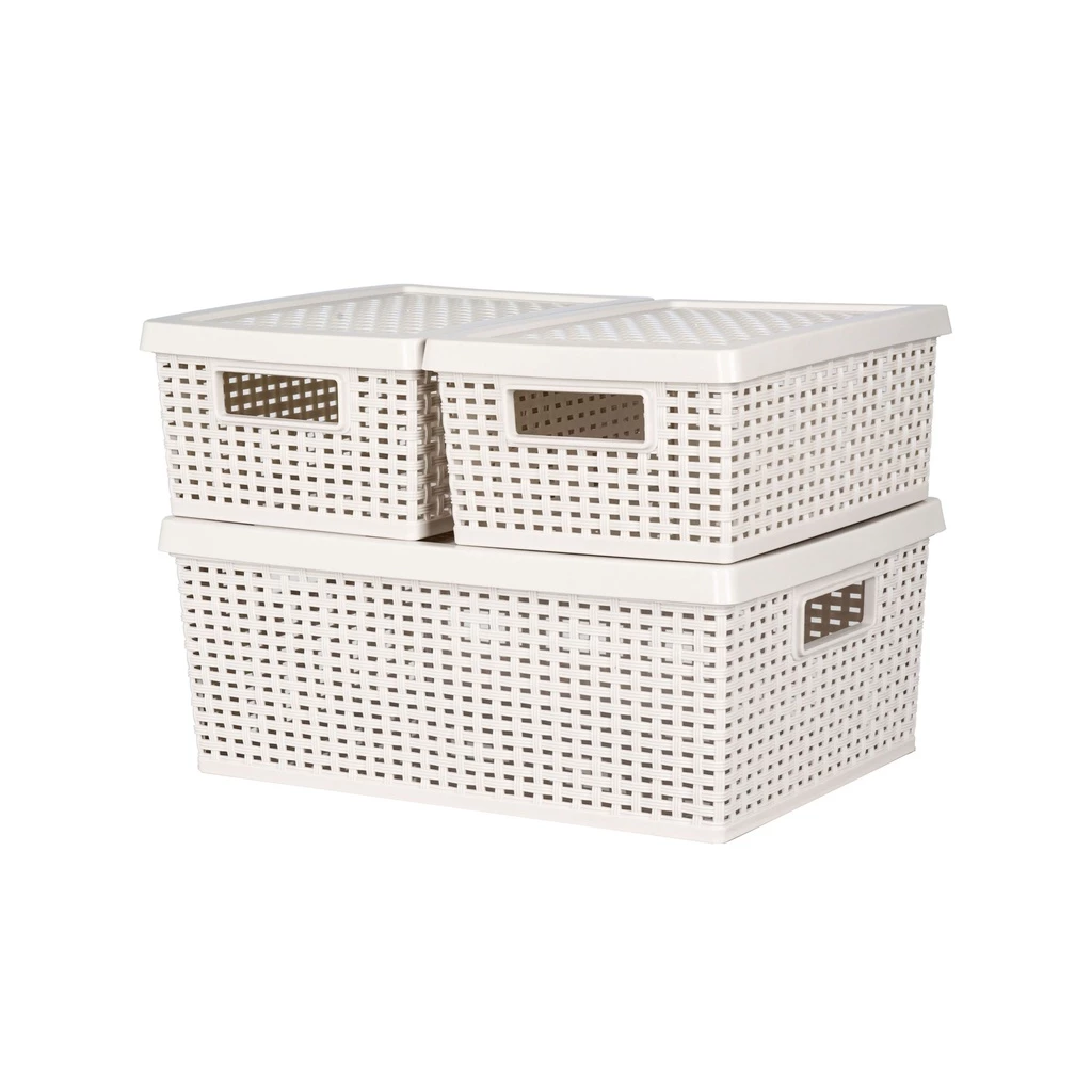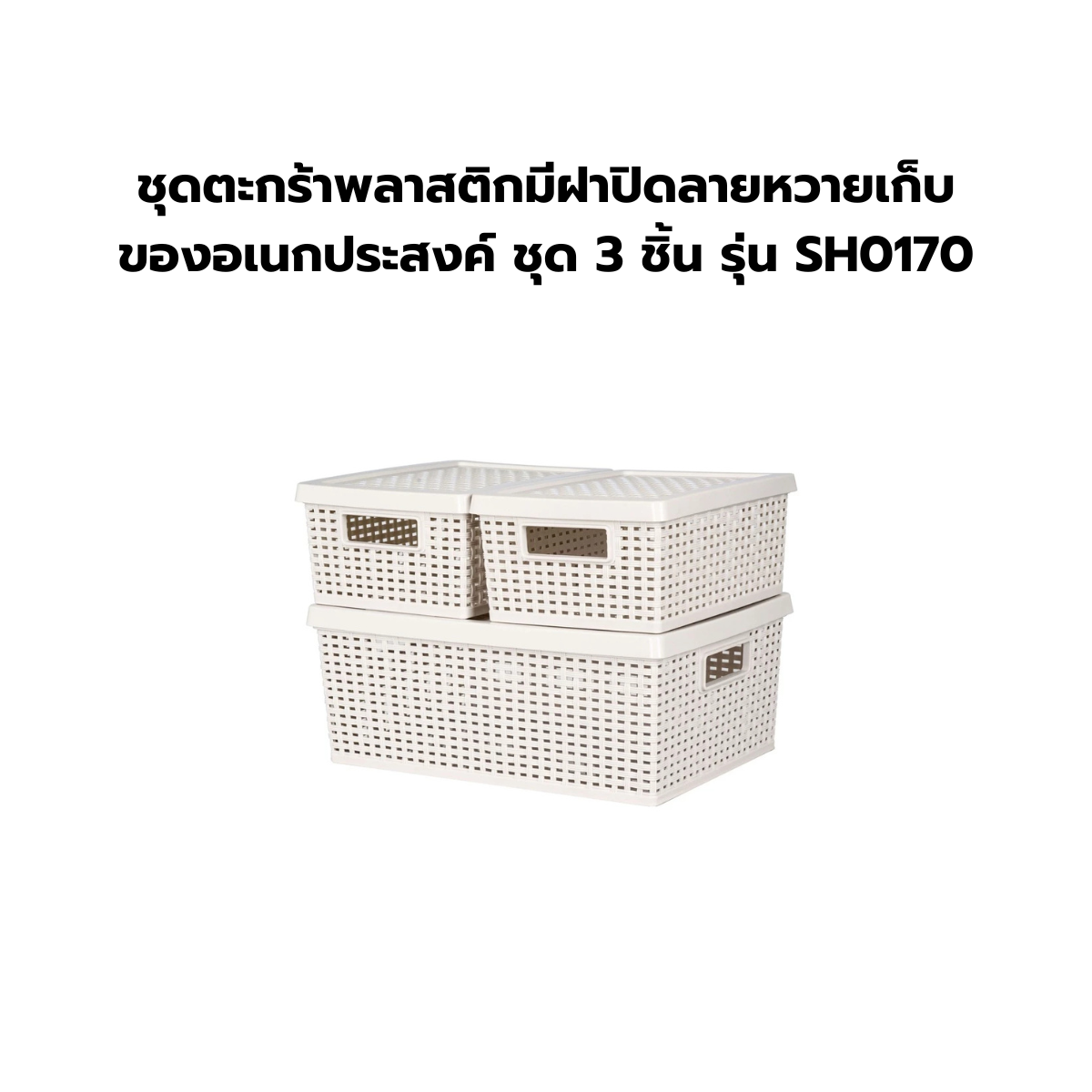 ชุดตะกร้าพลาสติกมีฝาปิดลายหวายเก็บของอเนกประสงค์ ชุด 3 ชิ้น รุ่น SH0170
