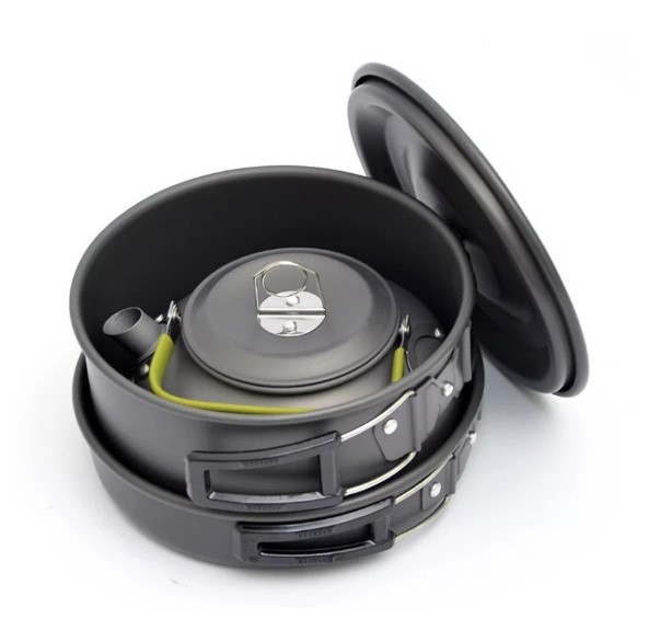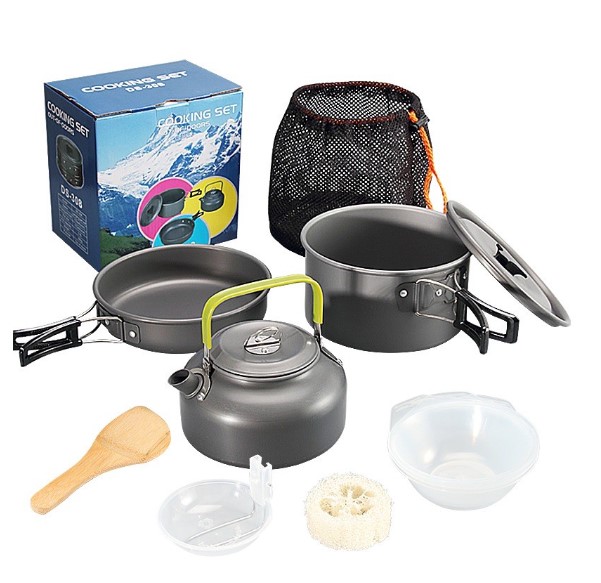 DS-508 ชุดหม้อสนาม ชุดหม้อ ชุดหม้อแคมป์ปิ้ง พร้อมถุงจัดเก็บ แถมชามใสและถ้วยเล็กพร้อมอุปกรณ์