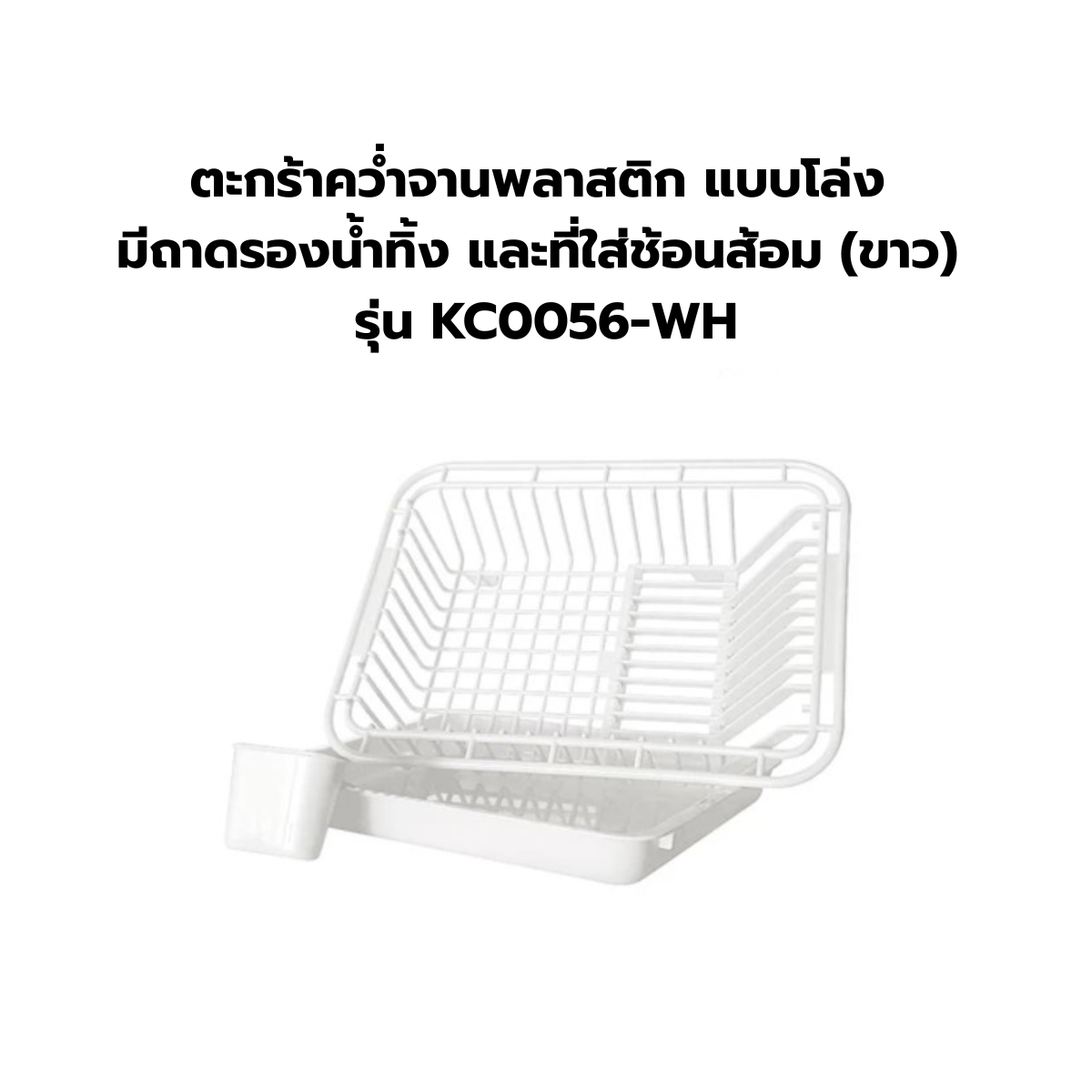 ตะกร้าคว่ำจานพลาสติก แบบโล่ง มีถาดรองน้ำทิ้ง และที่ใส่ช้อนส้อม (ขาว) รุ่น KC0056-WH