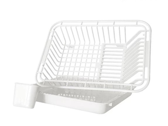 ที่คว่ำจานชามพลาสติก ตะกร้าคว่ำจาน แบบโล่ง มีถาดรองน้ำทิ้ง และที่ใส่ช้อนส้อม