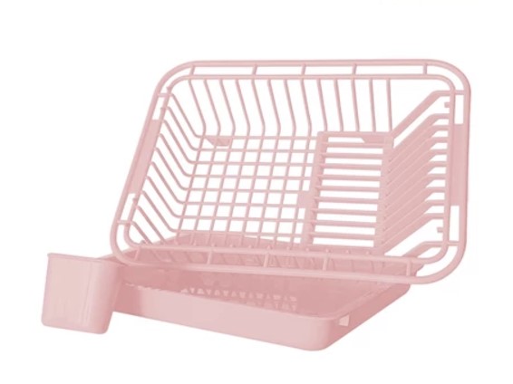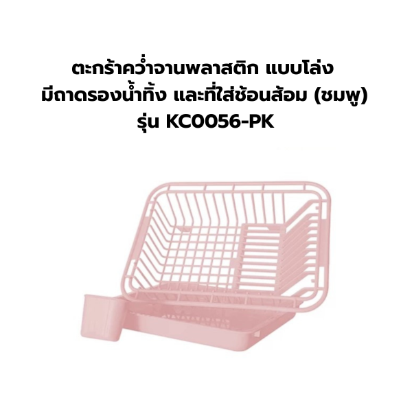 ตะกร้าคว่ำจานพลาสติก แบบโล่ง มีถาดรองน้ำทิ้ง และที่ใส่ช้อนส้อม (ชมพู) รุ่น KC0056-PK