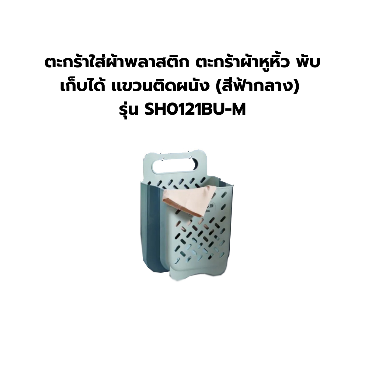ตะกร้าใส่ผ้าพลาสติก ตะกร้าผ้าหูหิ้ว พับเก็บได้ เเขวนติดผนัง (สีฟ้ากลาง) รุ่น SH0121BU-M