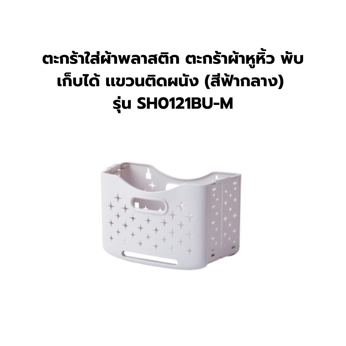 ตะกร้าใส่ผ้าพลาสติก ตะกร้าผ้าหูหิ้ว พับเก็บได้ เเขวนติดผนัง (สีขาวใหญ่) รุ่น SH0121WH-L