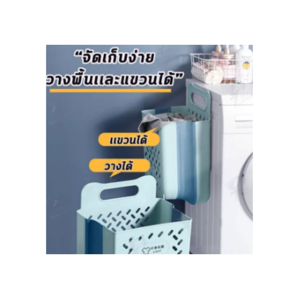 รายละเอียดสินค้า ตะกร้าใส่ผ้าพลาสติก ตะกร้าผ้าหูหิ้ว 3ขนาด พับเก็บได้ เเขวนติดผนัง ประหยัดพื้นที่