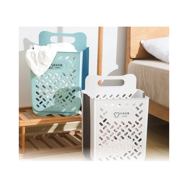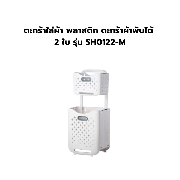 ตะกร้าใส่ผ้า พลาสติก ตะกร้าผ้าพับได้ 2ใบ รุ่น SH0122-M