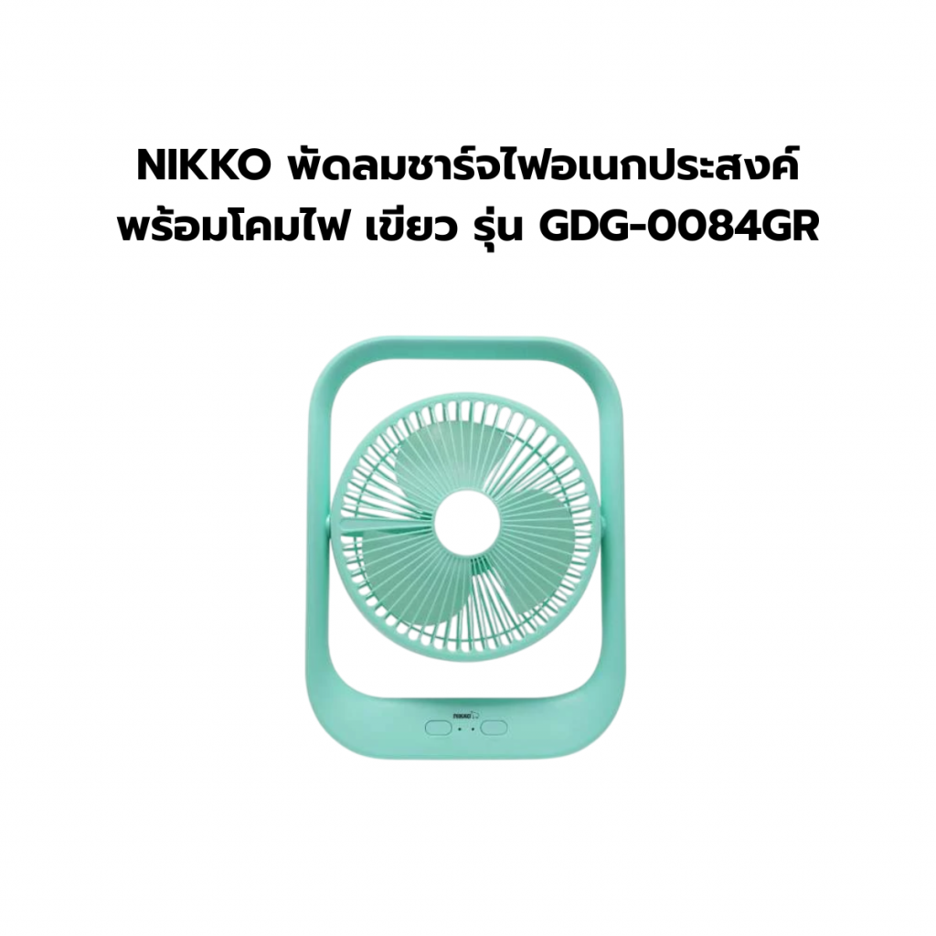 NIKKO พัดลมชาร์จไฟอเนกประสงค์ พร้อมโคมไฟ เขียว รุ่น GDG-0084GR
