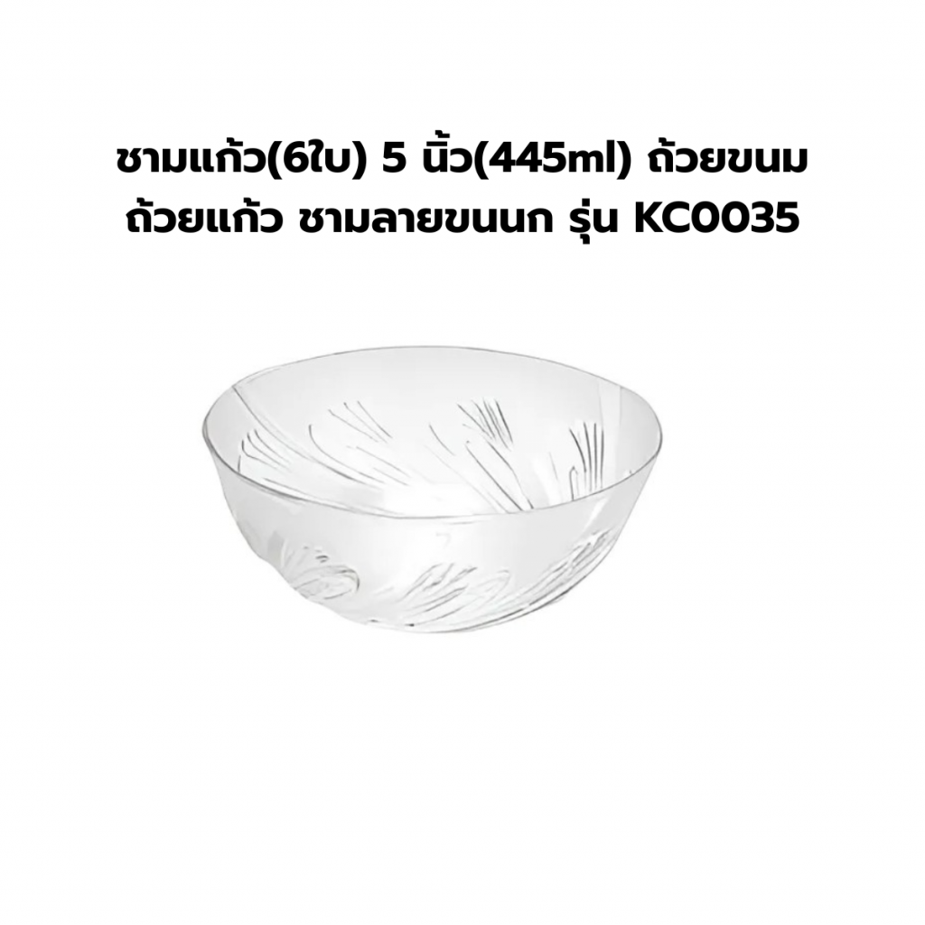 ชามแก้ว(6ใบ) 5 นิ้ว(445ml) ถ้วยขนม ถ้วยแก้ว ชามลายขนนก รุ่น KC0035