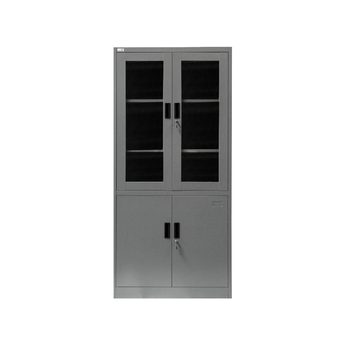 ตู้เหล็กเก็บเอกสาร ตู้เหล็กบานเปิดสูงบนกระจก-ทึบล่าง สีเทา SH0008GY