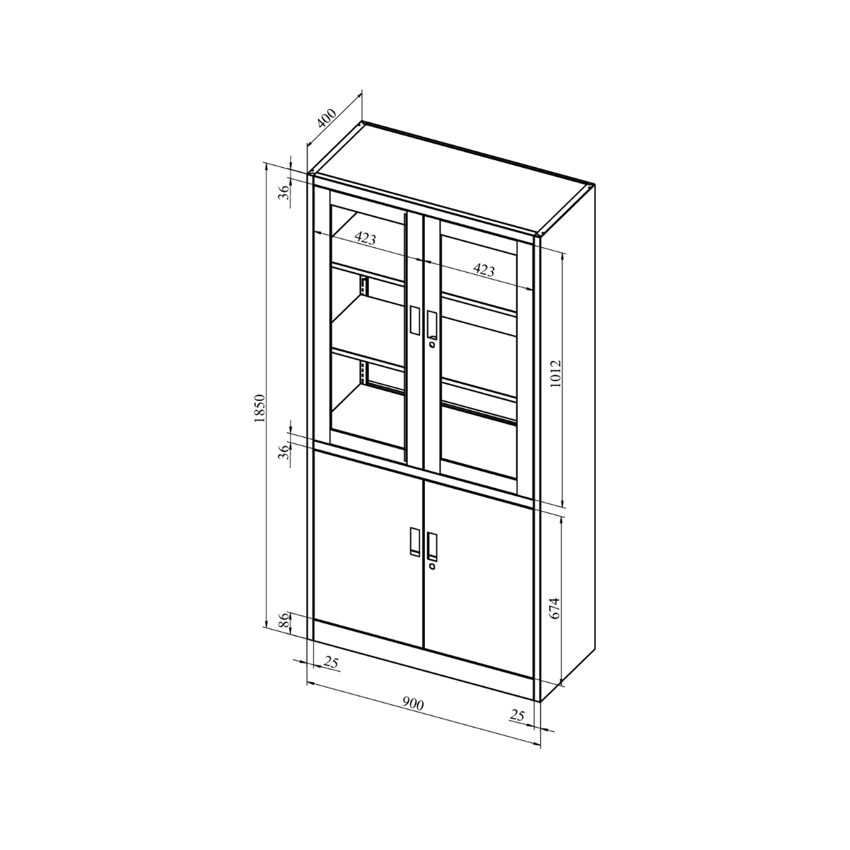 ตู้เหล็กบานเปิดสูงบนกระจก-ทึบล่าง