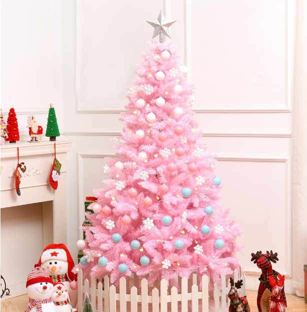 ต้นคริสต์มาส ต้นไม้ปลอม สีชมพู 210 cm. 7 ฟุต