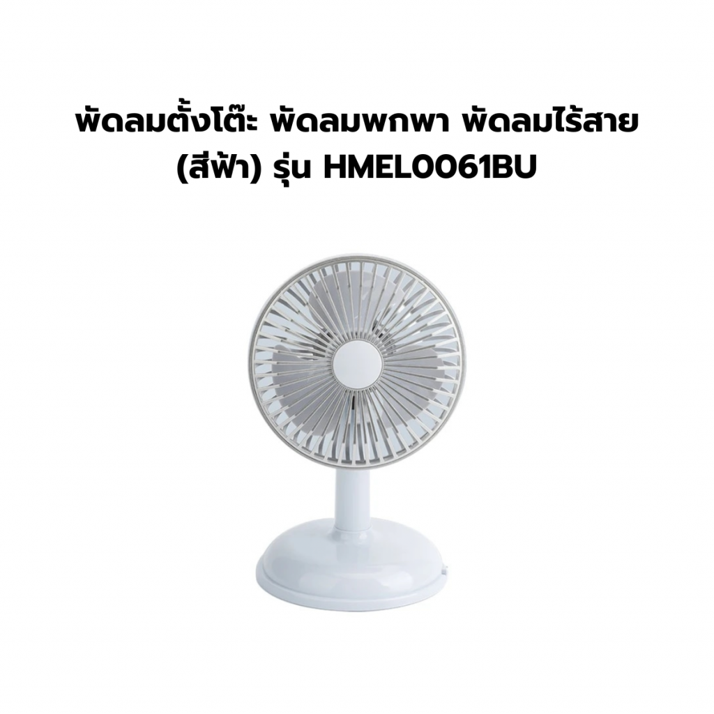 พัดลมตั้งโต๊ะ พัดลมพกพา พัดลมไร้สาย( สีฟ้า ) รุ่น HMEL0061BU