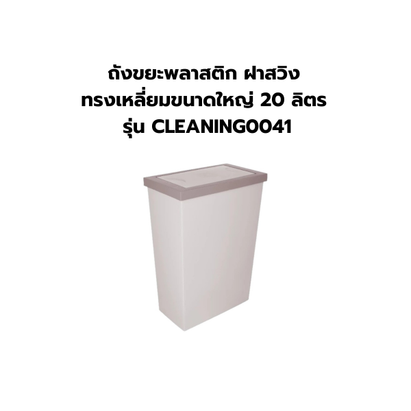 ถังขยะพลาสติก ฝาสวิง ทรงเหลี่ยมขนาดใหญ่ 20 ลิตร รุ่น CLEANING0041