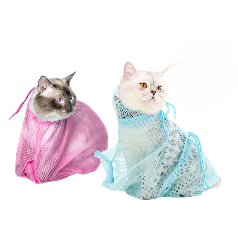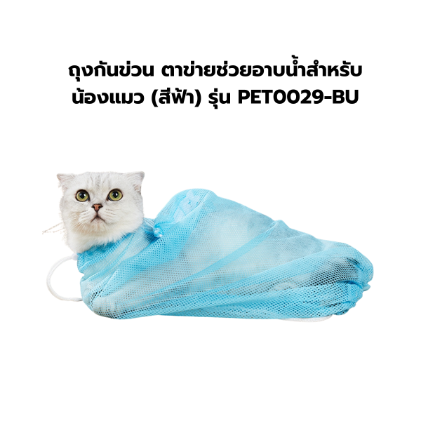 ถุงกันข่วน ตาข่ายช่วยอาบน้ำสำหรับน้องแมว (สีฟ้า) รุ่น PET0029-BU
