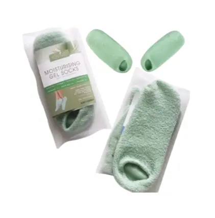 ถุงเท้าสปานี้ ด้านในมีส่วนผสมของอโรเวร่า และ วิตามินอี เพื่อบำรุงมือ ให้ชุ่มชื่น มือนิ่มขึ้นไม่ต้องไปเสียเวลาไปทำสปาที่ร้านอีกต่อไป ทางร้านเสนอ ถุงเท้าสปา มีส่วนผสมของเจลอโรเวร่า และ วิตามินอี olive lavender jojoba essential oils. เพื่อให้ความช่มชื่น