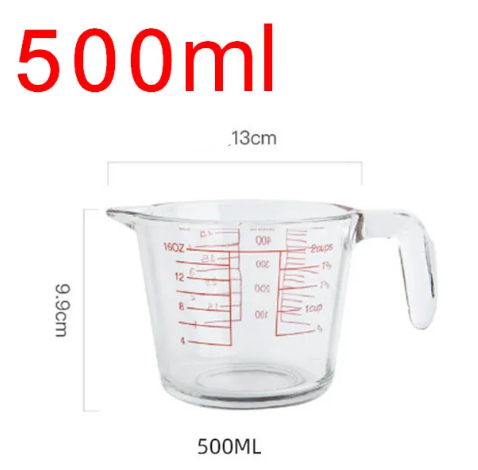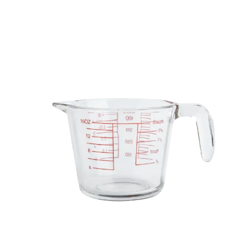 ผลิตจากแก้วบอโรซิลิเกตเนื้อหนาพิเศษ ก้นแก้วหนาพิเศษ แข็งแรง ทนทาน ชั่งตวงส่วนผสมได้แม่นยำกว่าเก่า ทนอุณหภูมิสูงต่ำได้ดี ลักษณะใส มองเห็นของเหลวในภาชนะได้ชัด วิธีการใช้งาน เหมาะสำหรับตวงส่วนผสม หรือ ตวงวัตถุดิบ ร้านนม-ขนมปัง ร้านชานมไข่มุก ร้านน้ำผลไม้ ร้านเครื่องดื่ม (ใช้ได้ทั้งในครัวเรือนละเชิงพานิช) ข้อควรระวัง แก้วตวง ทำจากแก้ว แตกได้ ล้างก่อนใช้งาน ไม่ควรใช้ฝอยเหล็กขัดทำความสะอาด ควรใช้ฟองน้ำในการทำความสะอาดและเช็ดให้แห้งทันทีหลังใช้งาน