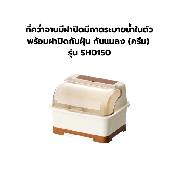 ที่คว่ำจานมีฝาปิดมีถาดระบายน้ำในตัว พร้อมฝาปิดกันฝุ่น กันแมลง (ครีม) รุ่น SH0150