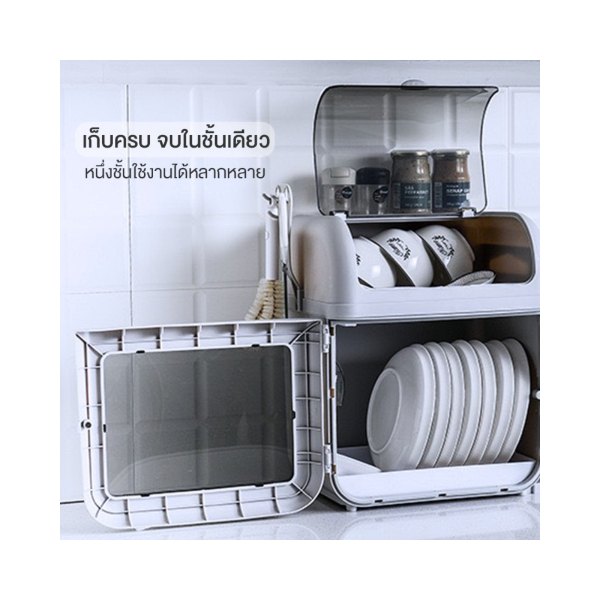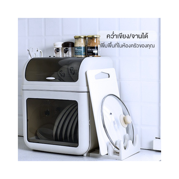 ที่คว่ำจาน 2 ชั้น พร้อมฝาปิด วางของด้านบน ที่แขวนทัพพี ด้านข้าง SH0006