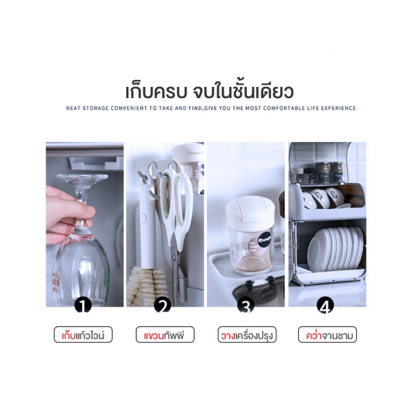 1. ที่คว่ำจาน 2 ชั้น พร้อมที่แขวนทัพพี และที่คว่ำฝาหม้อ หรือเขียง