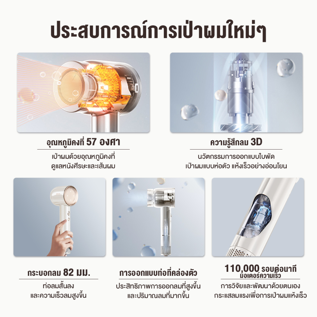 และเทคโนโลยีการดูแลเส้นผมด้วยไอออนลบ ซึ่งได้รับการออกแบบอย่างพิถีพิถันภายในห้องปฏิบัติการแบบอากาศพลศาสตร์ของ Dreame