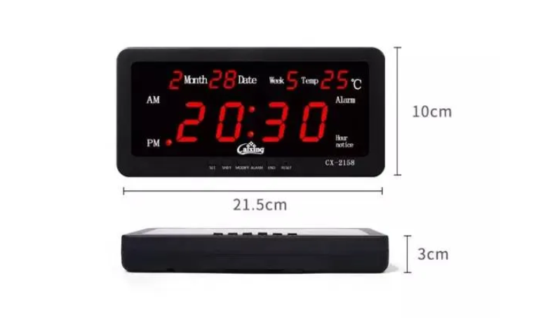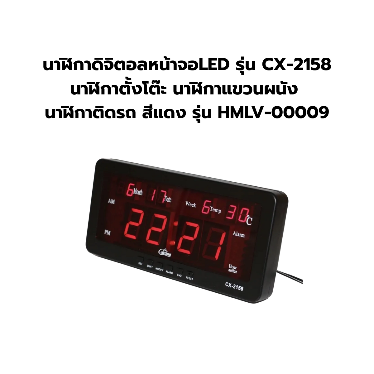 นาฬิกาดิจิตอลหน้าจอLED รุ่น CX-2158 นาฬิกาตั้งโต๊ะ นาฬิกาแขวนผนัง นาฬิกาติดรถ สีแดง รุ่น HMLV-00009