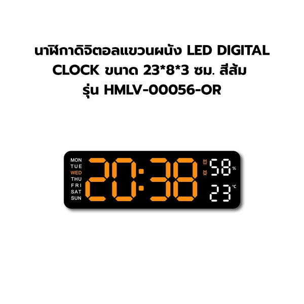 นาฬิกาดิจิตอลแขวนผนัง LED DIGITAL CLOCK ขนาด 23*8*3 ซม. สีส้ม รุ่น HMLV-00056-OR