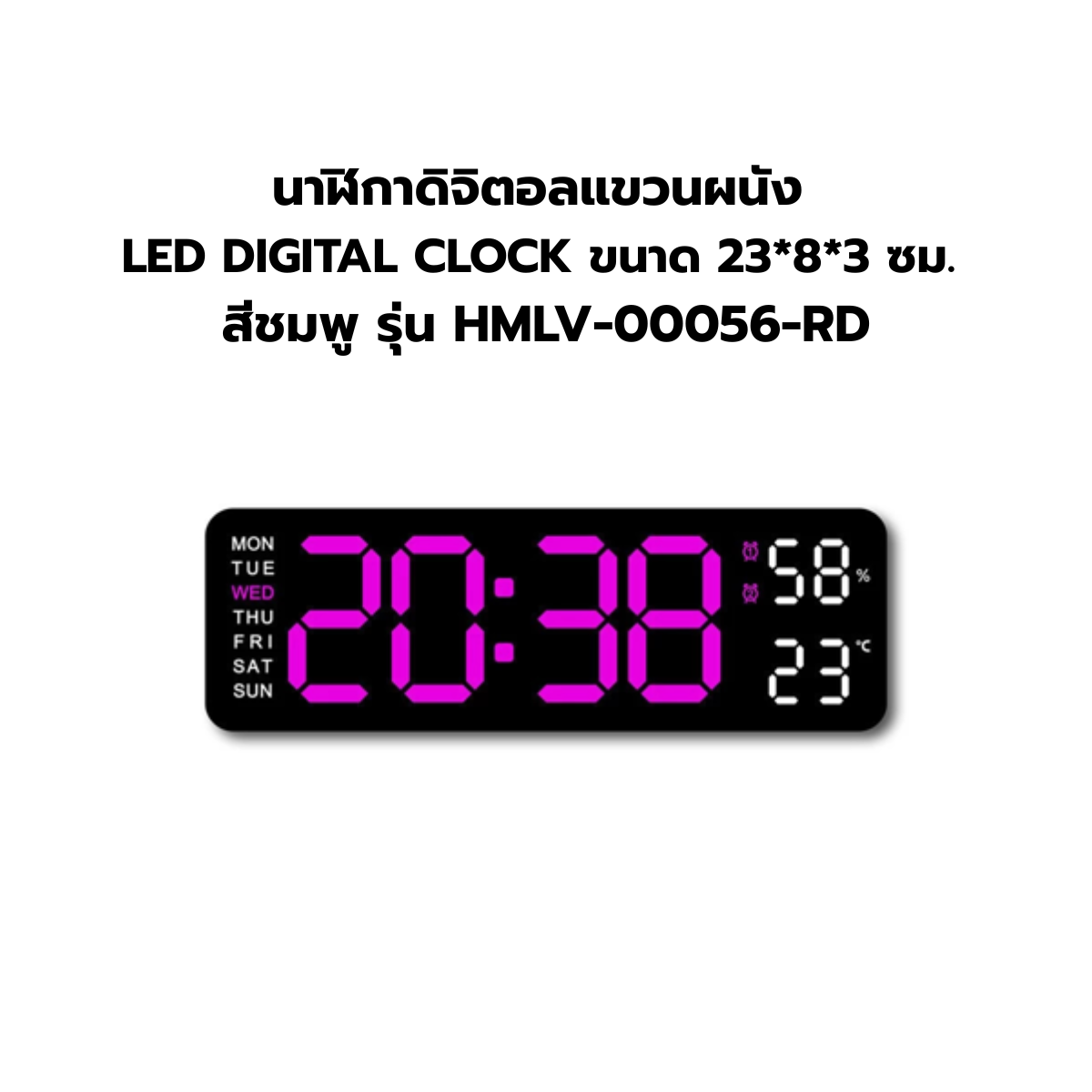 นาฬิกาดิจิตอลแขวนผนัง LED DIGITAL CLOCK ขนาด 23*8*3 ซม. สีชมพู รุ่น HMLV-00056-RD