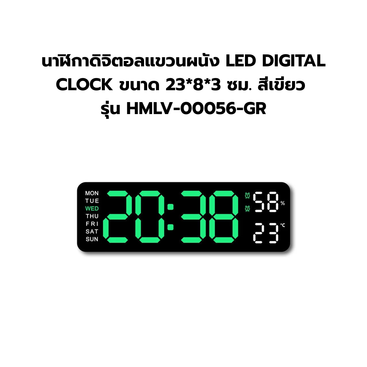 นาฬิกาดิจิตอลแขวนผนัง LED DIGITAL CLOCK ขนาด 23*8*3 ซม. สีเขียว รุ่น HMLV-00056-GR