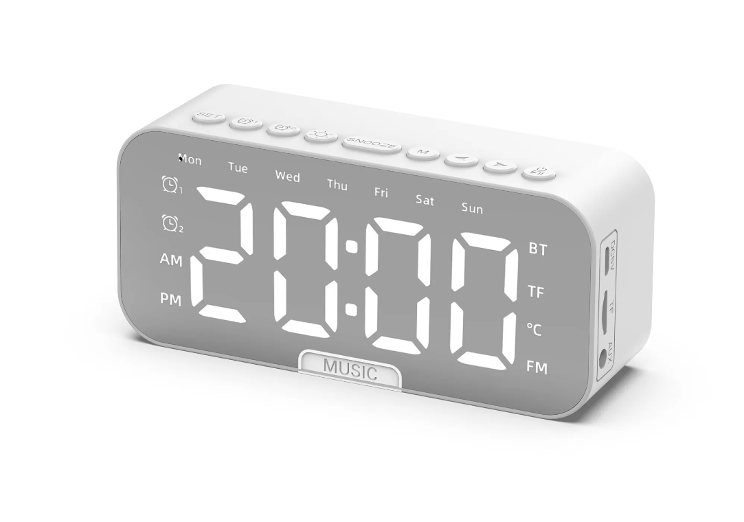 บลูทูธไร้สายลำโพงซูเปอร์เบส เสียงนาฬิกาปลุก ขาว